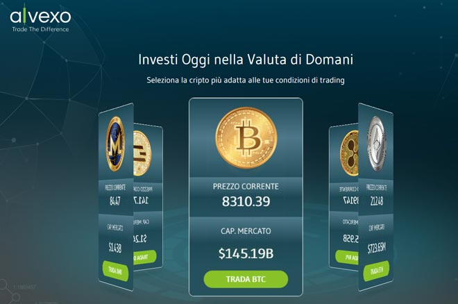 Fare trading su criptovalute con Alvexo è semplice e intuitivo. Per iniziare ti basterà registrarti al sito ufficiale (www.alvexo.it) e in 10 minuti sarai operativo per comprare e vendere Bitcoin o le altre criptovalute disponibili nell'offerta di Alvexo.