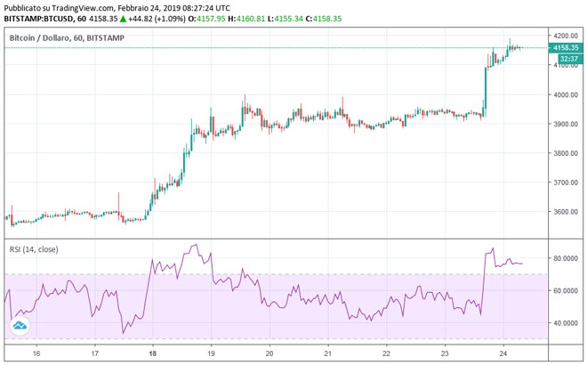 In una sola settimana il prezzo del Bitcoin è passato dai 3.500 fino a superare i 4.200 dollari. Ben 700 dollari di rialzo in 7 giorni che ha riportato fiducia da parte degli investitori.