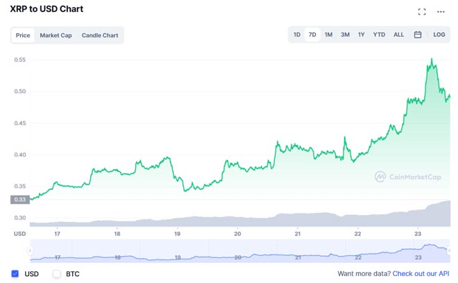 In effetti, con questa crescita XRP ha aggiunto quasi 9 miliardi di dollari alla sua capitalizzazione di mercato passando da 16,14 miliardi a oltre 25 miliardi di dollari.