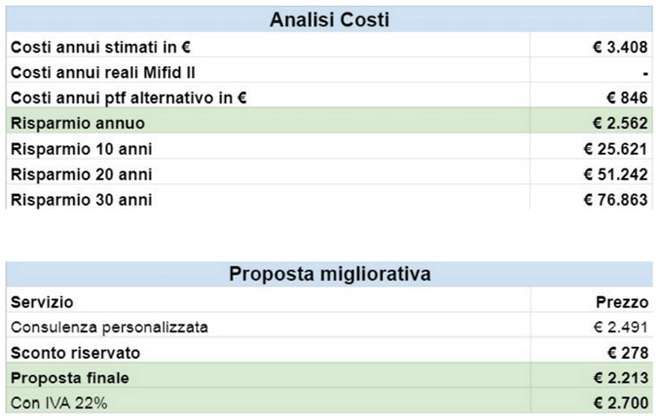 Ricorrendo ad una consulenza finanziaria si riuscirebbe a risparmiare molto di più rispetto alla situazione di partenza.