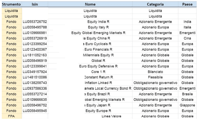 Prendiamo ad esempio sempre lo stesso portafoglio composto da 17 fondi.