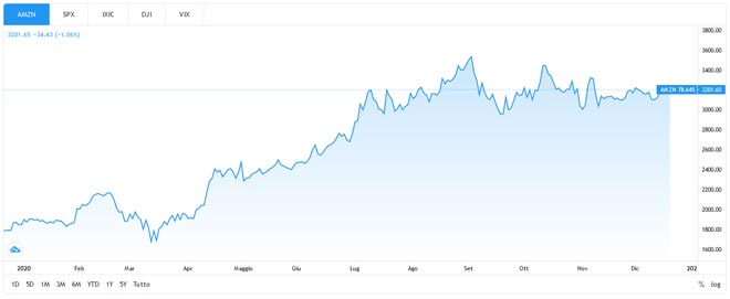 Berkshire ha acquistato per la prima volta azioni in Amazon nel 2019 e queste lo hanno ripagato mettendo a segno un rendimento eccezionale. Chi ha scelto di investire in azioni Amazon nel 2020 ha ottenuto fino ad ora una straordinaria performance del 71%. Amazon ha beneficiato dell'aumento della domanda di acquisti online durante la pandemia di coronavirus e può offrire ancora maggiori rendimenti nel 2021 investendo in opportunità di business ad alto margine come il cloud computing e la pubblicità digitale.