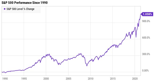 Dall'inizio delle sua storia, l'indice S&P 500 ha ottenuto un tasso di rendimento medio di circa il 10% all'anno. Da chiarire che l'S&P 500 ha registrato correzioni e arresti anomali nel corso degli anni, ma è sempre stato recuperato da ognuno di essi.