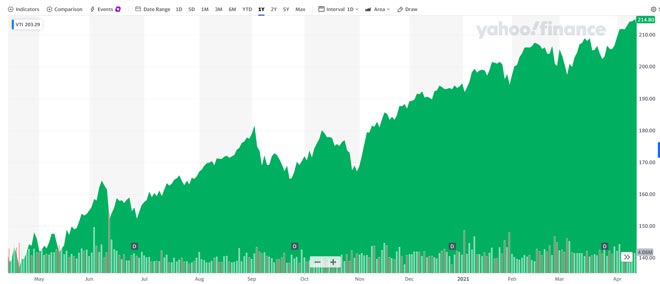 Grafico in tempo reale del Vanguard Total Stock Market ETF (VTI).
