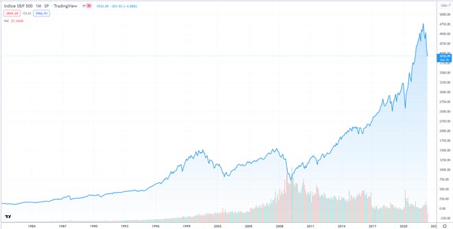 Il motivo principale per cui è consigliato questo tipo di investimento è che è estremamente probabile che si riprenda meglio da una flessione del mercato. L'indice stesso ha dovuto affrontare dozzine di correzioni, crolli e mercati ribassisti nel corso dei decenni, ed è sempre riuscito a rimbalzare, indipendentemente dalla gravità di queste flessioni o dalla durata.