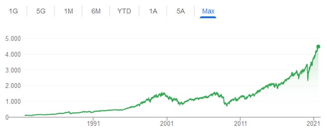 Un altro vantaggio dell'ETF S&P 500 è che è un fantastico investimento a lungo termine. Questo tipo di fondo funziona meglio quando ha tutto il tempo per crescere, idealmente qualche decennio. Se investi su questi ETF S&P 500 e lo lasci da solo per abbastanza a lungo, puoi guadagnare una notevole quantità di denaro.