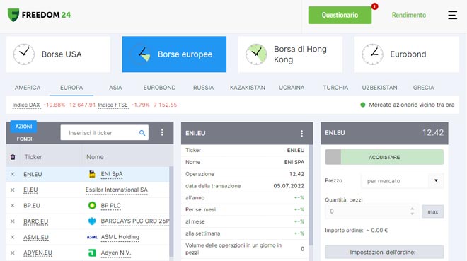 Ora non possiamo far altro che occuparci di condividere alcune riflessioni su quali sono le migliori piattaforme per investire in ETF e la nostra scelta è per Freedom24 di Freedom Finance (vedi qui la recensione di Freedom24). Freedom24 è l’unico Broker UE quotato al Nasdaq che permette di investire in ETF, azioni e altre securities, grazie a una piattaforma completa, user-friendly e molto professionale.