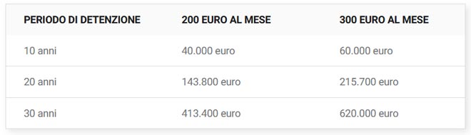 In effetti, l’indice S&P 500 è salito del 1.650% negli ultimi 30 anni, ovvero del 10,01% su base annua. A questo ritmo, 300 euro investiti mensilmente in un fondo indicizzato S&P 500 varrebbero 60.000 euro in 10 anni, 215.700 euro in 20 anni e 620.000 euro in 30 anni.