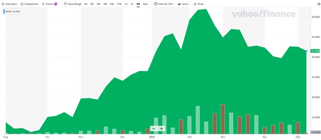 Se l'investimento sulla crescita è più la tua passione, l'ETF AdvisorShares Pure U.S. Cannabis (NYSEMKT: MSOS) è quello che stai cercando. Come suggerisce il nome, questo è un ETF che acquista azioni di marijuana focalizzate sul mercato della cannabis negli Stati Uniti.