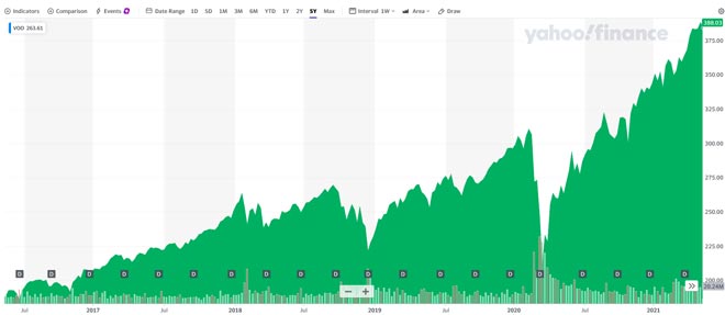 Come suggerisce il nome, l'ETF Vanguard S&P 500 ha come obbiettivo di replicare la performance del benchmark S&P 500. L'obiettivo qui non è battere il mercato con questo ETF, ma replicare efficacemente le sue prestazioni nel tempo. Vanguard acquista partecipazioni nelle 500 società (alcune delle quali hanno più classi di azioni) che compongono l'S&P 500, in questo modo questo ETF che segue molto da vicino il movimento dell'indice seguito.