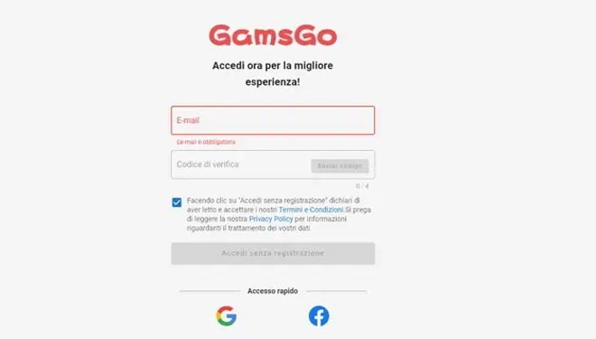 Il funzionamento di GamsGo è molto simile a tante altre piattaforme di condivisione account in abbonamento, ci dovremo recare sul sito di GamsGo ed accedere effettuando una registrazione.