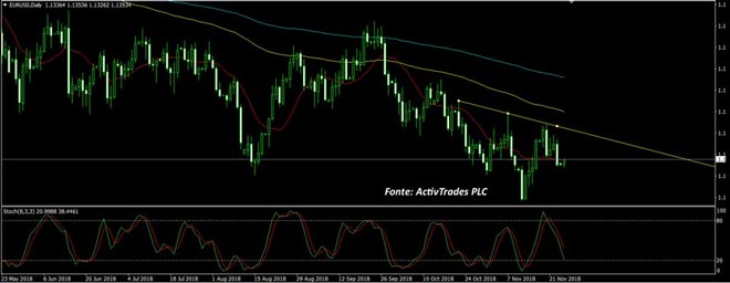 Passando allo Jpy, notiamo un indebolimento legato soprattutto al ridimensionamento dell’avversione al rischio, dopo l’approvazione del Consiglio Europeo all’accordo, con UsdJpy salito sopra 113.00 nuovamente dopo il minimo di 112.40 del 20 novembre. Di conseguenza EurJPy ha corretto rispetto ai minimi di 127.90 di venerdì sera. Oceaniche in ripresa, soprattutto Nzd che torna vicino a 0.6800 sul dollaro e sembra pronto a riattaccare livelli superiori mentre Aud resta un poco indietro pur tenendo egregiamente l’area di 0.7200. E questione di tempo e anche il dollaro australiano ritornerà verso aree più vicine ai target non lontani da 0.8000. UsdCad stabile a 1.3200 con i cross EurCad , EurNzd ed EurAud, che ancora di tornare sui minimi, dopo la discesa significative dell’ultimo mese e mezzo.