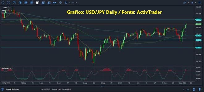 Il UsdYuan ha rotto il supporto di 6,90 e scende verso 6,80 con i prezzi ora stabili in area 6,87. Ancora ci chiediamo cosa potrà far scendere i mercati quest’anno, e per il momento non riusciamo a trovare una risposta che abbia un senso, a meno che, improvvisamente, il manifatturiero americano in calo non provocherà una diminuzione dell’occupazione che potrà causare qualche rallentamento globale. Altrimenti, almeno allo stato attuale, non riusciamo ancora ad intravedere nulla che ci faccia pensare ad un periodo di risk off costante. Sul nostro mercato, assistiamo allo scivolamento dello Jpy contro tutto e tutti, in correlazione atipica risk on, e quasi in condizione di panic buying di valute contro divisa giapponese. UsdJpy ha obiettivi in area 110.60 a giudicare dai punti di swing che osserviamo, rappresentato dal massimo precedente visto nel maggio 2019. Al di sopra di quel livello, non c’è nulla fino a 112.35-40 area. EurJpy ha violata 122.60 e ora sembrerebbe avviato a 123.40.