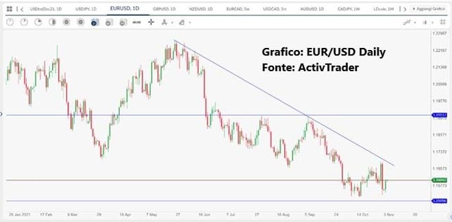 Sulle valute la diversificazione di portafoglio sta creando qualche scompenso alle solite correlazioni dollaro-centriche in ragione del fatto che agli operatori non è chiaro quali saranno le conseguenze delle decisioni che la Fed potrà prendere. La sensazione è che il dollaro salga sulle voci del tapering ormai imminente, in ragione del fatto che la Fed sembra essere tra le banche maggiormente hawkish in questa fase, più della Bce e della Boj ed in linea con Boe, Rba e Boc, ovvero le banche centrali inglese, australiana e canadese, mentre pare leggermente meno avanti, in termini di rialzo del costo del denaro, della Rbnz che peraltro è la prima ad aver anticipato il rialzo dei tassi lo scorso mese. Ma vi è un’altra tesi che circola e che sostanzialmente ritiene che il dollaro salga in ragione del fatto che il tapering sia di fatto già scontato nei prezzi e che il rialzo dei tassi verrà posticipato nel dot plot che i banchieri centrali Usa dovranno adeguare, in ragione del rallentamento economico. E ciò, paradossalmente, sarebbe la ragione del risk on presente sui listini e la ragione della forza sostenuta della divisa. Diciamo che per un verso o per l’altro entrambe le tesi potrebbero avere un senso, ma proprio per questo, è realmente difficile fare previsioni per stasera, proprio in ragione di questa varietà di interpretazioni. La nostra idea è che il dollaro possa inizialmente salire per poi successivamente ripiegare, durante la conferenza stampa di Jerome Powell, che non mancherà certamente l’occasione di mantenere un tono accomodante ed evitare scossoni sui mercati. Una cosa però ci sembra di poterla dire, ovvero che, se i mercati non si muoveranno e rimarranno tendenzialmente poco volatili anche dopo questa sera, beh allora potremo assistere al rally di natale per i mercati azionari e con dei trading range sul nostro mercato, che potrebbe quindi chiudere l’anno senza ulteriori movimenti significativi.