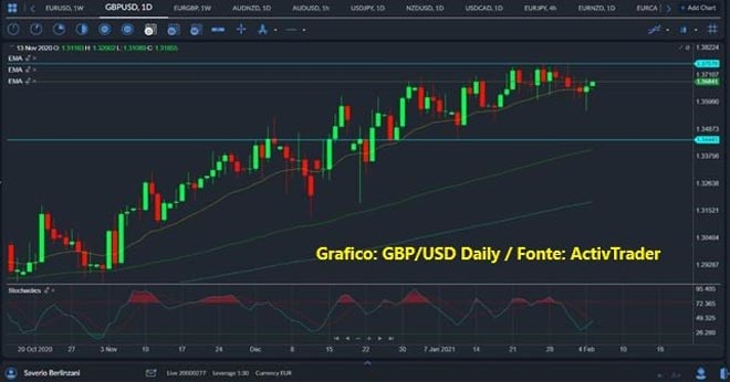 La Bank of England (Boe) ha sorpreso ancora una volta i mercati. La price action sulla sterlina si è rivelata assai interessante, e dopo un primo movimento di ribasso nel timore che le dichiarazioni di Andrew Bailey fossero maggiormente dovish del previsto, è partita violentemente al rialzo, una volta compreso che non solo la Bank of England non vuole sentir parlare di tassi negativi ma addirittura pensa di iniziare a ridurre il programma di Quantitative Easing (Qe) già nel 2021. Quindi tassi invariati a +0.10%, asset purchase a 895 miliardi di sterline e commenti hawkish. La ragione sembra essere una inflazione che corre più del previsto, nonostante la pandemia sia ancora ben lontana dall’essere sconfitta. Sterlina, dunque che dopo un tentativo di discesa e di rottura del supporto a 1.3560, è letteralmente schizzata al rialzo salendo quasi fino a 1.3700 per poi consolidare tra1.3650-60 e 1.3690-95.