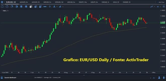 L’EurUsd è sceso quasi fino a 1.1647 per poi correggere e tornare stamani in area 1.1680, nonostante l’avversione al rischio cominci a percepirsi distintamente anche sugli indici e sul Gold, che è in correlazione diretta con i listini. Il Dax sta cedendo terreno e sta trascinando con sé anche i listini americani, che stanno perdendo quota in prossimità delle elezioni, in contrasto con la statistica storica che ci racconta che la settimana prima delle elezioni, tendenzialmente Wall Street è salita 9 volte nelle ultime 12 elezioni. Ma la notizia di ieri, sul fronte Usa, è stato il dato sul Pil del terzo trimestre che è apparso sorprendente, essendo uscito a +33.1% contro una attesa di +31%, ma soprattutto dopo un tonfo del secondo trimestre del 31.4%. Tale rimbalzo è eclatante ma va inserito nel contesto, che è parso di ripresa generalizzata dopo i numeri tremendi del primo e secondo trimestre. Bisogna dire che nonostante il rimbalzo la produzione economica resta sotto i livelli pre-Covid, ma ciò ci pare anche normale e anche logico viste le incertezze attuali. In ogni caso l’economia Usa sembra aver recuperato circa i due terzi della sua produzione persa nel secondo trimestre. Le misure di stimolo sono sicuramente servite ma è probabile che i prossimi dati, dato il peggioramento dei numeri relativi alla pandemia, possano essere decisamente inferiori a quelli appena usciti. Vedremo, anche perché in mezzo a tutto ciò tra pochi giorni sapremo chi sarà il Presidente Usa e da quel punto di vista, ci aspettiamo un aumento della volatilità dei mercati.