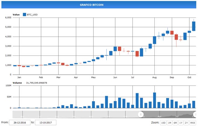 Un anno di successo per il Bitcoin che si può facilmente descrivere osservando il grafico degli ultimi 10 mesi