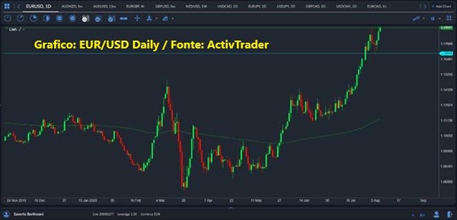 Ma il focus, sul mercato valutario, resta la valutazione del dollaro e l’impennata dell’oro, che guidano le danze sul nostro mercato. Fino a quando non vi sarà una stabilizzazione del prezzo della #commodity più importante, sarà difficile vedere un ritorno del biglietto verde, che resta ampiamente sotto pressione contro le principali valute. Il superamento eventuale di 1.1920-30 area, potrebbe spingere l’#Euro al test di 1.2000 e di tutta l’area che in passato aveva visto livelli significativi di supporti/resistenze, tra 1.2000 e 1.2100. Per il momento niente e nessuno sembrano frenare la corsa della moneta unica, trascinata anche dai dati tedeschi sugli ordini all’industria che nel mese di luglio hanno evidenziato un incremento del 27.9%, rispetto ad un consensus di +10%.