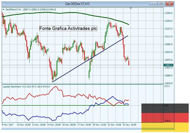 Dax ieri ha davvero passato una brutta giornata, somatizzando in ritardo di un paio di giorni le incertezze politiche del governo Merkel. La chiusura ufficiale a 13.009 delle 17,35 non realizza il mood della seduta, che peraltro ha chiuso vicino ai minimi in area 12.980.