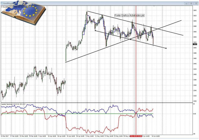Eurostoxx: resistenze 3545-3553-3560-3565-3571 con eventuale estensione 3589. Per i supporti,sotto 3529 andiamo a individuare 3521-3515-3510-3505-3498-3493-3487, e anche in questo caso ove ci fosse un sell l’eventuale estensione può essere area 3465 circa.