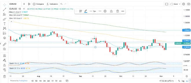 EurUsd in deciso recupero con la creazione su base daily di un quarto minimo superiore rispetto al minimo di 0.9526 del 28 settembre scorso, un movimento che, nel caso di superamento delle resistenze poste a 1.0100 confermerebbe probabilmente una possibile inversione del trend, che da un punto di vista tecnico ci pare interessenza e possibile. Se invece analizzassimo il quadro macro e geopolitico, ancora non riusciremmo a spiegare ed eventualmente a trovare, una motivazione di un possibile rialzo della moneta unica.
