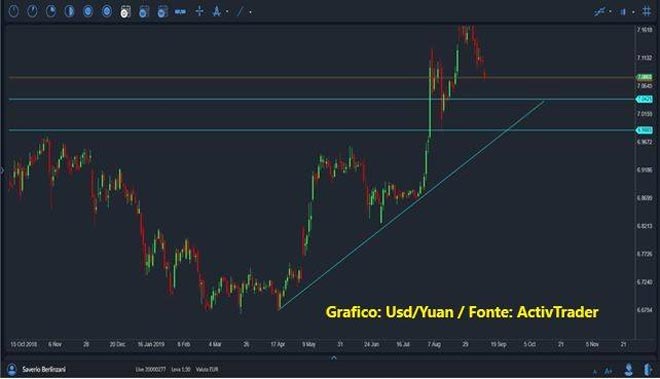 Intanto, sul fronte interno la Pboc mantiene un approccio espansivo attraverso l’espressa volontà di ridurre i tassi la settimana prossima, dopo aver tagliato la riserva obbligatoria qualche giorno orsono. E mentre scriviamo il UsdYuan ha violato i supporti chiave posti a 7.1000 e lentamente scende con un minimo toccato poc’anzi a 7.0730. I target, osservando il grafico, sembrano essere posizionati sui livelli di swing precedenti, intravisti a 7.0420, minimo del 6 agosto, e 6.9907, minimo del 13 agosto di quest’anno.