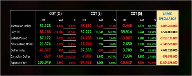 Ricordiamo infine che il mercato dei futures rappresenta una percentuale intorno al 6 7 per cento dei volumi totali forex globali. Cercheremo, da qui in avanti di fornire questi dati settimanalmente.