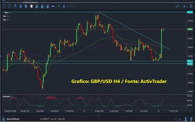 Sulla Brexit, la novità arriva dall’idea che Boris Johnson avrebbe concordato con il Premier Irlandese Varadkar, su un accordo di libero scambio ridotto, per sbloccare l’empasse e chiuderlo entro la fine di Ottobre. Gli addetti ai lavori sembrano aver appoggiato questa soluzione che rappresenterebbe una base per un accordo più ampio. Ora bisognerà vedere la reazione dell’Europa, che negli ultimi giorni sembrava molto scettica sull’eventualità di risolvere la questione entro fine ottobre, e già stamani, ascolteremo le reazioni dei rappresentanti del vecchio continente. Ciò potrebbe creare volatilità di breve termine, come è accaduto ieri sera alla sterlina, passata in poche ore, durante la sessione americana, da 1.2250 a 1.2450 con una accelerazione importante, e accumulazione persistente con consolidamento sui massimi.