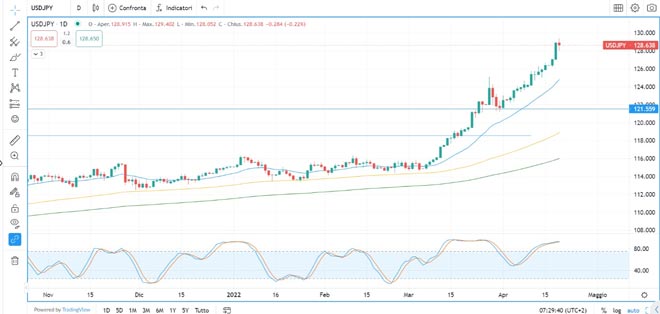 Mercati stabili nella seduta di ripresa dopo le vacanze pasquali, ovvero una sessione priva di grandi spunti tecnici e/o movimenti erratici, fatta salva una ulteriore discesa dello Jpy che continua a sprofondare senza soluzione di continuità contro le principali valute. E a nulla sono servite la parole del Ministro delle Finanze giapponese Suzuki che ha messo in guardia i mercati dalle cadute troppo rapide della divisa giapponese. E’ di certo una discesa, quella della moneta del paese del sol levante che è principalmente dettata dal fatto che nell’arco del 2022, il delta tasso tra dollaro e Jpy arriverà ad essere circa il 2.25% almeno, il che significa che gli investitori, giocoforza, andranno a privilegiare investimenti in divisa Usa e finanziamenti in Jpy, con un rendimento positivo interessante, considerati quelli degli ultimi anni sul mercato valutario. Un nuovo carry trade finalmente, il che finalmente farà tornare lo Jpy la classica valuta rifugio, caratteristica persa dal 2010 in poi, dato che i Qe delle banche e i tassi a zero avevano di fatto annullato i delta tassi.