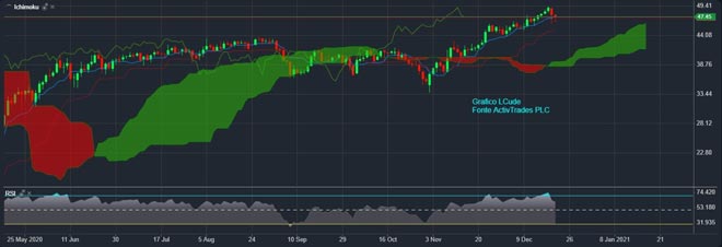 Nel settore del petrolio, tuttavia, alcuni ritengono che la domanda potrebbe non tornare mai ai livelli pre-COVID, per il fatto che in molti ambiti, lavorativi e di svago, la nostra vita è cambiata. L'impatto di tutto questo è visibile sui grafici con un aumento della volatilità nel breve periodo: attenzione ai valori di ipercomprato, segnalati dal RSI, che potrebbero far continuare le prese di beneficio fino al supporto posto a $44. In ogni caso anche i livelli di resistenza sono molto vicini, in area $52/55 e limitano la nostra visione long di medio periodo.