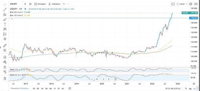 Il dollaro continua a salire lentamente e ciò pare non infastidire più di tanto la Boj che non sembra ancora pronta, né decisa ad intervenire. In effetti le autorità monetarie giapponesi si preoccupano del cambio solo se la discesa è disordinata, cioè volatile e irrazionale. Erano intervenuti una volta a 145.00 e si pensava che avessero messo una line in the sand per frenarne la corsa. Invece siamo saliti ulteriormente proprio perché molti investitori, fidandosi erroneamente della presenza delle autorità monetarie, sono andati ulteriormente short posizionando stop loss sopra le resistenze. E così di giorno in giorno, questi stop loss sono vengono presi in ragione dell’assenza della banca centrale. Tale approccio è continuato anche nell’ultima seduta che ha visto superato l’area di 150.00 Jpy per dollaro. Al di là di qualche finto intervento che ha provocato discese tra i 50 e i 100 pips in meno di un minuto (generati da rumors messi ad arte in circolazione), per poi tornare tranquillamente al rialzo, non si è visto molto.
