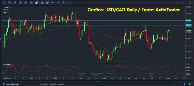 Mancano ancora tre settimane alla decisione della Fed, sui tassi, attesa per il 30 ottobre, e per ora, le percentuali stanno confermando una possibilità di riduzione dei Fed Funds nella forbice 1.50-1.75% pari all’83.4%. Da segnalare anche che la percentuale di un altro taglio dei tassi a Dicembre è data oggi al 44.3%. Questa è la ragione principale e determinante della correzione (almeno per ora) che si intravede sul biglietto verde, il quale, se da un lato pare ancora estremamente forte e non lontano dai massimi degli ultimi 10 anni, dall’altro non crediamo possa durare a lungo su questi livelli, proprio perché crea squilibri significativi e comincia ad intaccare la ripresa economica. Gli ultimi dati americani segnalano un rallentamento del settore manifatturiero e un peggioramento dei numeri legati agli investimenti, mentre sul piano occupazionale il rallentamento non pare essere marcato e siamo ancora sui massimi storici di occupazione.