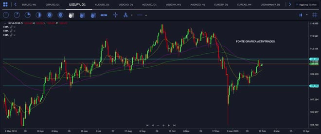 La tensione pertanto, legata al risk off, potrebbe aumentare da qui a breve, e per tale ragione, forse sarebbe il caso di cominciare ad osservare l’andamento degli indici e quindi in conseguenza dello Jpy. Il dow è arrivato alla ottava settimana di salita consecutiva. Siamo su livelli di resistenza interessanti, e crediamo sia da monitorare perché una eventuale inversione cambierebbe gli scenari per l’anno in corso. Da valutare quindi e seguire l’andamento del UsdJpy che è su resistenze altrettanto interessanti, poste nelle vicinanze, in area 111.15 20. Da considerare pertanto la possibilità di mancata violazione di questi livelli e una seguente discesa con obiettivi ambiziosi in area 108.50 60.