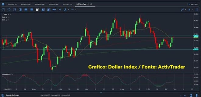 Sull’altro problema, la Brexit, si va ad elezioni il 12 dicembre e il rinvio è stato fissato al 31 gennaio 2020. Il mercato valutario rimane in una condizione di limbo, con movimenti sempre molto blandi e solo di fronte alla pubblicazione di notizie o rumors si muove con decisione. La battaglia è ancora tra il dollaro e le altre valute, con la divisa Usa che non molla, sostenuta ancora da un delta tasso che ne impedisce il consolidamento su livelli bassi, per cui alla fine torna sempre a salire. C’è però la sensazione che il biglietto verde sia incapace di far registrare nuovi massimi, restando vicino ai massimi di periodo senza però violarli. È forse questo un segnale di inversione di lungo periodo, che sarà certamente lenta in ragione di quanto appena detto sui tassi, ma anche perché i dati macro Usa non accennano assolutamente una inversione ribassista.