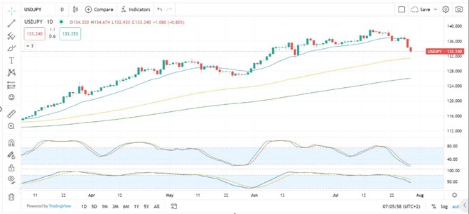 La vera novità di ieri, giornata successiva alla decisione sui tassi da parte della Fed, è rappresentata dal dato Usa sul Pil del secondo trimestre, che, nella prima rilevazione, ha evidenziato un calo dello 0.9%, decisamente al di sotto delle aspettative, che erano per un incremento dello 0.5%. Hanno pesato su consumatori e imprese, una inflazione ancora troppo elevata, unitamente alle persistenti pressioni sulla catena di approvvigionamento. Un dato sorprendente che fa coppia con un Pil negativo già presente nel primo trimestre, uscito a sua volta a -1.6%. Ciò conferma l’esistenza di una recessione tecnica, prevista quando il Prodotto interno lordo reale mostra una variazione negativa per almeno due trimestri consecutivi.
