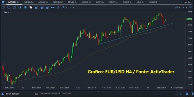 Ora il mercato è ad un ennesimo bivio: o siamo di fronte ad un top possibile e correzione conseguente che, dati i livelli di ipercomprato e presenza di divergenze tecniche, sembrerebbe dovuto, oppure, andremo a violare i precedenti massimi contro il biglietto verde e andremo a generare una nuova onda rialzista che potrebbe portare i prezzi sui livelli già visti nel 2018, che sull’EurUsd sono posti a 1.2560 circa.