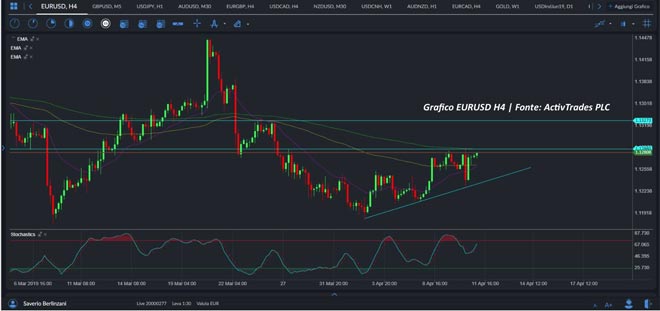 L’EurUsd ha fatto registrare un calo mentre Draghi parlava, fino a 1.1229 per poi correggere e riposizionarsi sui massimi successivamente, ovvero quando sono state pubblicate le minute della Fed che hanno controbilanciato le parole di Draghi. Di fatto, tecnicamente la moneta unica resta, nei confronti del dollaro, nel range, ma osservando i grafici di medio termine, si osserva la costruzione di minimi crescenti e una certa compressione che sembra andare al breakout rialzista che viene confermato anche sui grafici daily con obiettivi che sembrano essere posizionati in area 1.1340 e, nel caso di violazione a 1.1450.