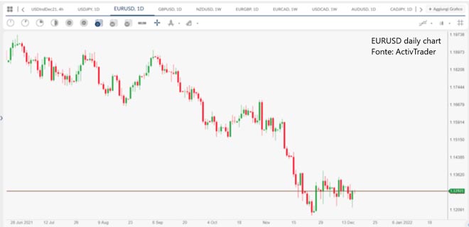 Powell ha poi risposto indirettamente alle critiche che in qualche modo gli erano state mosse dopo il cambio repentino di atteggiamento verso l’inflazione, definita prima per mesi temporanea e poi improvvisamente strutturale. Ha infatti detto che nel mondo globalizzato la congiuntura cambia in modo assai rapido e per tale ragione bisogna adeguare le proprie scelte a tali cambiamenti. Infine ha ribadito che si attende il rialzo del costo del denaro solo nel momento in cui il tapering sarà terminato, quindi dopo metà marzo, anche se non sarà un processo automatico ma dipenderà dai prossimi dati. Questo ultimo accenno non è da sottovalutare e la reazione dei mercati crediamo vada proprio in questa direzione. Non è infatti detto che i dati Usa da qui a marzo saranno ulteriormente in crescita e tali da generare un aumento dei tassi quasi automatico, e il dato sulle vendite al dettaglio di ieri pomeriggio, decisamente inferiori alle attese, potrebbe far correggere il dollaro al ribasso.