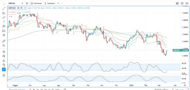 Sulle altre coppie valutarie, invece abbiamo assistito ad un bel movimento contrario al dollaro, come se in questo momento, dell’analisi del delta tasso non importasse a nessuno, ma il mercato sembra ancora orientato a seguire la price action dettata dalle notizie che arrivano dal fronte geopolitico. E in queste ultime ore si sono aperti spiragli nei negoziati tra Russia e Ucraina e sembra si possa giungere ad un accordo, un compromesso accettabile per entrambe le parti che creai una zona di cuscinetto con l’Ucraina neutrale ma comunque con un proprio esercito, e non aderente alla Nato e dall’altra parte assicurare la garanzia di sicurezza al paese invaso, come richiesto dal suo Presidente. Vedremo se finalmente ciò porterà ad un cessate il fuoco.