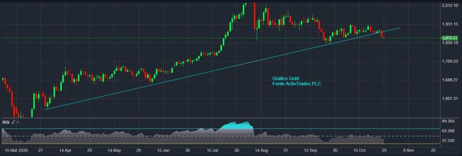 A meno di una settimana dalle elezioni presidenziali statunitensi del 3 novembre, il Gold rimane ancora sotto pressione. L'elezione del nuovo Presidente degli Stati Uniti d’America è potenzialmente uno dei più importanti eventi seguiti dagli investitori, poiché la vittoria di uno o dell’altro candidato, potrebbe modificare l’assetto politico/fiscale/economico dell’intero mercato finanziario e quindi le conseguenti decisioni della Federal Reserve (Fed) che deve tenersi pronta a questo evento. Il tutto si aggiunge naturalmente, alle continue preoccupazioni per una rinnovata accelerazione dei casi Covid-19 in Europa, l'attuale epicentro.