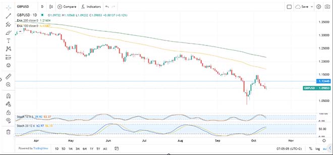 La scarsa fiducia che gli investitori ripongono nella moneta unica e nella valuta britannica, spinge i prezzi al ribasso e per correlazione dollaro centrica, scendono anche altre valute come lo Jpy e Cad e le oceaniche Aud, e Nzd. Ma ieri, durante la sessione europea e americana, avevamo intravisto una ripresa dell’Euro e della sterlina, saliti fino a 0.9775 e 1.1181, alimentati da un ritorno dei mercati azionari e da configurazioni tecniche interessanti che mostravano possibili correzioni in atto sui grafici giornalieri. Ma poi, a far ritornare tutto come in mattinata, ci ha pensato il governatore della Bank of England Bailey, il quale ha dichiarato che la Banca Centrale e il Governo inglese stanno lavorando in direzioni opposte, riaffermando poi la volontà di sospendere l’intervento sul mercato obbligazionario definendolo temporaneo. Apriti cielo! La sterlina ha perso così circa 200 pips dai massimi in poco più di mezz’ora di contrattazioni, chiudendo in area 1.0980. Ovviamente tutto il mercato ne ha risentito e tutti i dollari sono schizzati al rialzo, mentre le borse hanno perso il terreno guadagnato in precedenza.