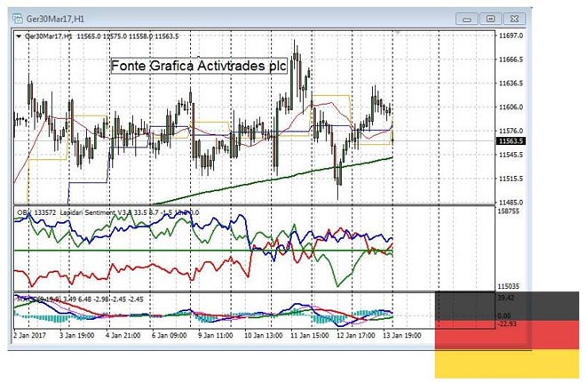 Per il Ger30, ritengo che un ritorno di positività non possa prescindere da superare 11.614 e andare nuovamente, nel caso, a confrontarsi con la resistenza di 11.630 e successivamente di 11.650. A ribasso, sono del parere di porre estrema attenzione a tutta la zona 11.540/11.530 – più volte interessata questi giorni da istanze ribassiste finora respinte – perché vi transita anche la media mobile a 200 periodi già oggetto di test nella seduta di giovedì.
