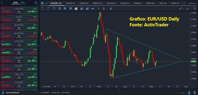 Anche le altre valute hanno seguito, in particolar modo le oceaniche che hanno corso anche di più, in un movimento che pare essere una inversione di medio e lungo termine, anche per effetto di dati macro che, specie in Australia, ci hanno sorpreso positivamente. La bilancia commerciale australiana infatti, ha fatto registrare un surplus di 10 miliardi di dollari nel mese di Marzo, la più alta di sempre. L’export ha visto un balzo del 15% con un incremento di 42 miliardi mentre le importazioni sono scese del 4% a livello di 31.8 miliardi. Considerando il primo trimestre, rispetto allo stesso periodo del 2019, l’eccedenza è di 19.5 miliardi rispetto ai 14.4 dell’anno scorso (parliamo sempre di dollari australiani ovviamente). AudUsd si avvicina alla resistenza che passa a 0.6572 e la cui rottura potrebbe rappresentare la prima vera inversione di lungo periodo dal 2014, quando i prezzi violarono la media a 200 periodi sul grafico mensile. Discorso analogo, lo possiamo fare per NzdUsd e in parte anche per UsdCad, che si stanno avvicinando su supporti del dollaro molto importanti di medio e lungo termine. Oggi venerdì, è giorno di payrolls Usa, che potrebbero dare una ulteriore spinta al ribasso del biglietto verde. Le attese sono per un calo di 22 milioni di disoccupati, una cifra record che mai avremmo immaginato di vedere nella nostra lunga militanza sui mercati.