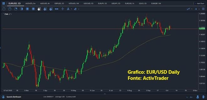 Tornando al nostro mercato quindi, segnaliamo un movimento interessante della sterlina, che comincerà a muoversi compulsivamente anche nelle prossime sedute in quanto la scadenza per la Gran Bretagna è vicina, il 15 ottobre, esattamente tra una settimana, giovedì prossimo. Saranno quindi 5 sedute presumibilmente infuocate, nelle quali prevarrà chi saprà avere nervi saldi e posizioni a leva bassa, almeno fino alla decisione che sarà presa, deal or no deal. Ieri si è parlato di accordo ma anche del fatto che in caso di non accordo, si cercherà un qualcosa di simile all’accordo che Uk ha con l’Australia, una specie di free trade agreement comunque. Questo potrebbe cambiare gli scenari anche in caso di no deal.