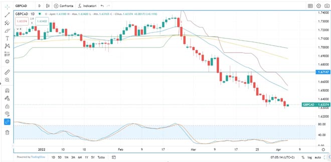 EurUsd a ridosso di 1.0900, pronto per la discesa a 1.0800 così come i cross della moneta unica che scendono persistentemente e senza soluzione di continuità. Sale invece il UsdJpy dopo le dichiarazioni di George della Fed che ha previsto un rialzo di 50 basis points nella riunione del 27 28 aprile prossimo. I target sembrano essere in area 125.50 126.00, considerando che il delta tasso tra le due valute si acuirà presto arrivando, secondo le previsioni dei banchieri Usa, al 2.5%. Il ritorno dei carry trades, per dirla in modo chiaro. Le prossime settimane saranno cruciali, in relazione ai dati che usciranno, perché a nostro avviso cominceremo a vedere gli effetti delle sanzioni e della guerra sulla crescita nei vari paesi, con l’Europa sotto la lente.