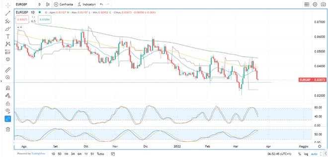 Sull’Euro quindi abbiamo detto, e fino a che resta al di sopra dei supporti chiavi, va tutto bene e non crediamo che la Bce per il momento, sia preoccupata del livello della moneta unica, e solo sotto 1.0700 potrebbe temere un aumento dell’inflazione importata da un tasso di cambio eccessivamente debole. Non dimentichiamo poi che le materie prime pagate in dollari, sia per i prezzi che hanno raggiunto, ma anche per il livello del biglietto verde, possono subire ancora rialzo che possono deprimere il recupero della crescita nei paesi più fragili, come il nostro, per esempio. L’uscita della bilancia commerciale negativa per 5 miliardi, causata dall’aumento dell’import di energia, è un pessimo segnale di quel che potrebbe accadere al nostro paese, se le ostilità tra Russia e Ucraina dovessero continuare nel medio termine. Per di più si legge che l’Italia vorrebbe partecipare attivamente al conflitto, per ora inviando armi, ma domani chissà, a livello macro tutto ciò non farà altro che peggiorare una situazione già difficile. Si legge infatti, che mezzo milione di aziende non sarebbero state in grado di pagare le prime rate fiscali del 2022, altro segnale che ci dovrebbe far riflettere.