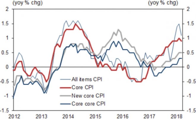 La crescita dei prezzi giapponese è rimasta ben al di fuori dell'obiettivo della BoJ, rafforzando la tesi di un ulteriore allentamento. Fonte: Forexlive