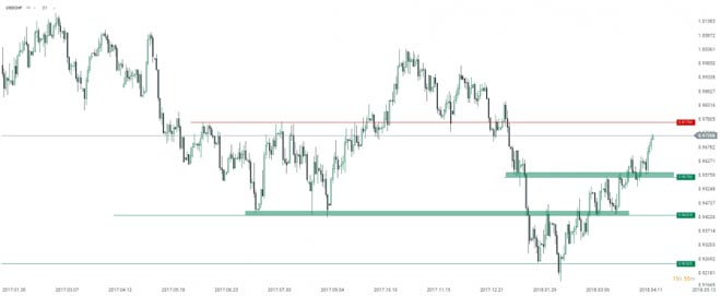 La valuta svizzera continua a declinare contro il biglietto verde che rimbalza su una zona di supporto decente. Gli orsi potrebbero vedere 0.9770 come loro opportunità di fare un'inversione. Fonte: xStation5