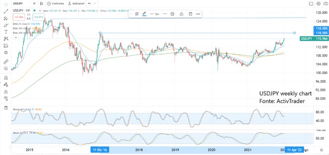 In questi primi giorni del 2022 sul mercato valutario si osserva una scarsa liquidità. Questa carenza di liquidità si nota nella dinamica delle price action che si muovono per ore in una stessa direzione senza accusa alcuna correzione, salvo poi effettuare degli improvvisi rimbalzi che, nell’arco di pochissimi minuti, recuperano i movimenti precedenti. Alla fine poi, osservando la dinamica giornaliera, siamo sempre, per la maggior parte dei tassi di cambio, all’interno dei trading range delle ultime 4-5 settimane. L’unico cambio che fa eccezione è il UsdJpy che sale senza soluzione di continuità da almeno 11-12 sedute, ovvero da quel 17 dicembre in cui si era visto un minimo a 113.10-15 area, e da cui si è saliti ininterrottamente fino al massimo visto ieri a 116.36, livello che non si vedeva da 5 anni esatti. La ragione di questo rialzo del dollaro è evidentemente legata all’andamento dei listini azionari, specie quelli Usa, ancora all’attacco di nuovi massimi storici.
