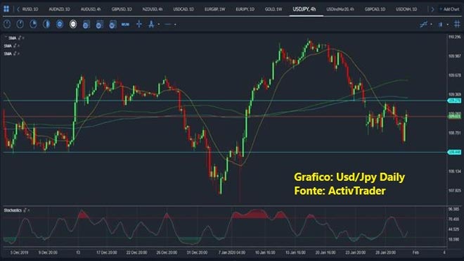 La reazione dei mercati, in chiusura di giornata, dopo una seduta caratterizzata da un risk off controllato, è stata significativa e sia il gold che il UsdJpy hanno corretto rispetto ai loro livelli di massima tensione, che erano stati rispettivamente un massimo di oro a 1586 dollari e un minimo di UsdJpy a 108.60. Stamani troviamo il Gold a 1573 e UsdJpy a 109.05. Anche il dollaro australiano, martoriato ieri dai venditori fino ad un minimo di 0.6700 ha reagito recuperando uno 0.30%. Ovviamente la situazione resta precaria, per tante ragioni, legate ovviamente all’incertezza sulle notizie e al timore che siano ben peggiori di quanto non venga comunicato. A nostro avviso occorre rimanere vigili ma consapevoli, e occorre osservare i fatti senza farsi prendere dal panico o prendere decisioni avventate. Come al solito spesso i mercati, cercano la paura per far uscire investitori e avere la possibilità di rientrare a momento debito e a prezzi più vantaggiosi. Forse questo 2020 sarà un anno in cui vedremo diversi alti e bassi sui mercati, e senza ipotizzare una recessione, siamo convinti che un rallentamento globale sia decisamente possibile e forse anche salutare. Buona giornata e buon trading.